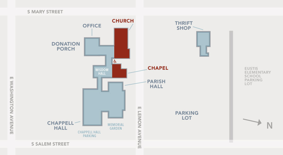 St. Thomas has a multi-building campus with different addresses. From our Church to our Parish Hall, and from our Thrift Store to our parking lot, our campus sits between South Mary Street and South Salem Street in beautiful Eustis, Florida.