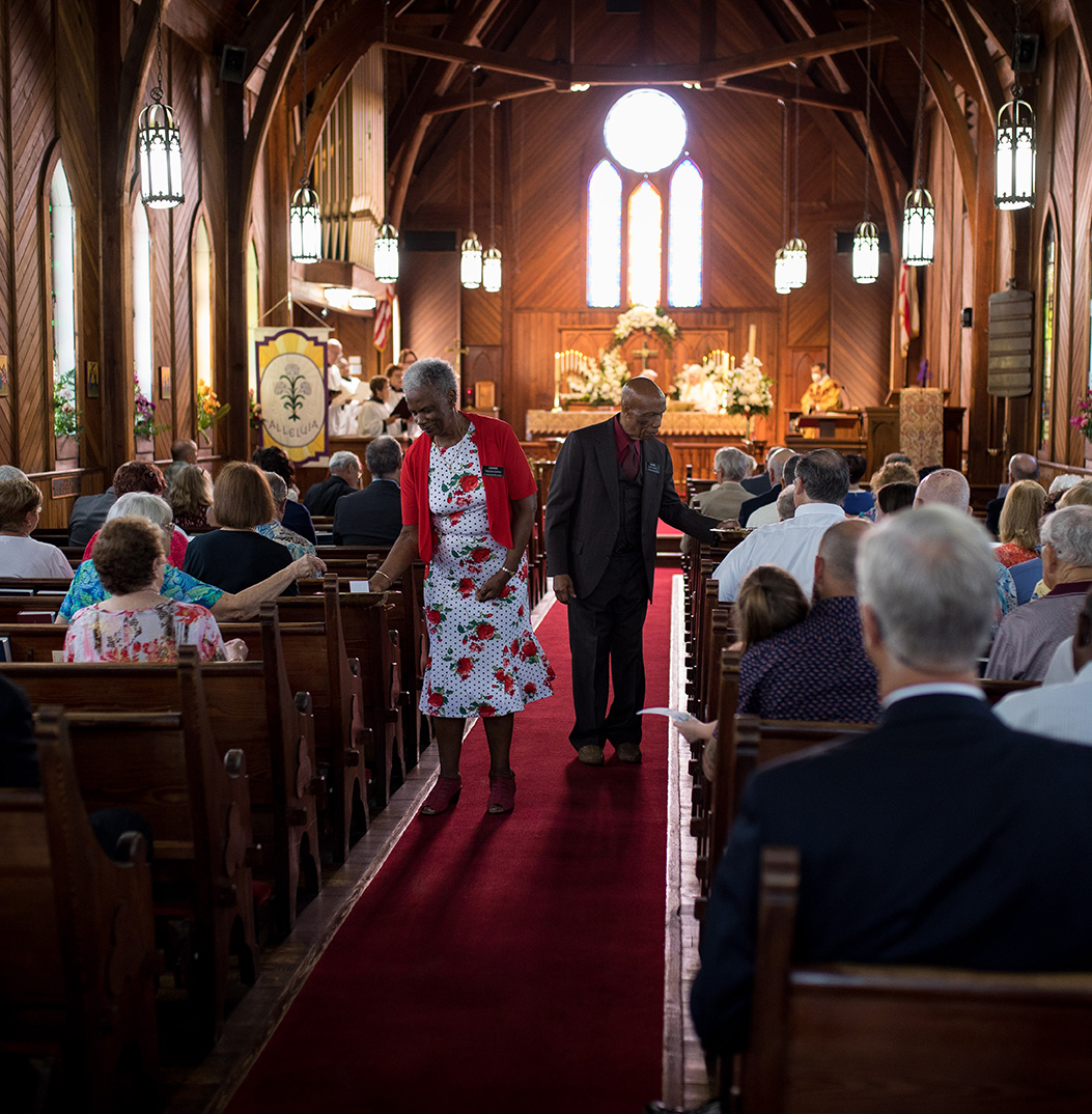 Ushers assist in collecting the Sunday offering, make a count of the number of people present at the mass to ensure the priest consecrates sufficient elements for all present, assists communicants to the altar during communion, and help to tidy up the church after the mass is completed